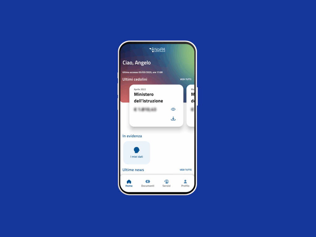 NoiPA アプリは PA スタッフのニーズを満たすように設計されており、Google Play ストアだけでなく、Apple App Store や Huawei AppGallery でも提供されています。そのおかげで、ユーザーは個人文書を参照したり、スマートフォンから直接 NoiPA サービスにすばやく簡単にアクセスしたりできます。ユーザーは、給与明細や単一証明書などの文書にアクセスしたり、総年間給与の推移を調べたり、控除について調べたり、ニュース専用のセクションで最新情報を入手したり、サポートをリクエストしたりできます。
